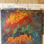 Mein erstes Bild mit der Acryl Pouring Technik. Es sind sechs Farben mit einem Fliessmittel vermischt worden. Die Farben wurden anschließend in einem größeren Kunststoffbecher übereinander geschichtet. Dann der Becher kopfüber auf die Leinwand gestellt. Dann wurde der Becher angehoben und die Farben verteilten sich auf die Leinwand. Durch Schwenken des Bildrahmens entstand das entgültige Bild. Die Bläschen sind durch die Verwendung von Silikonöl und einem Brenner entstanden.